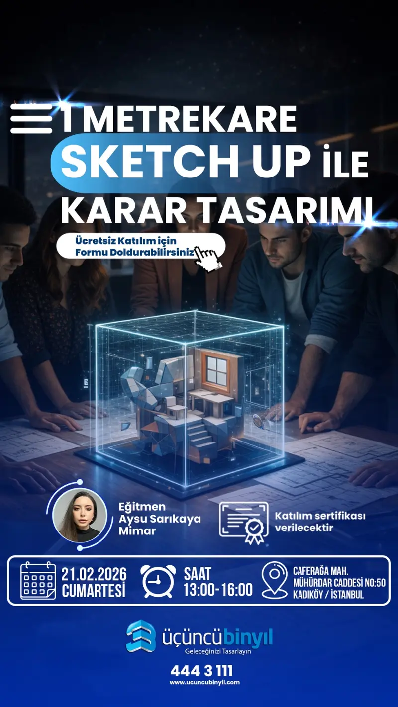 Tasarım dünyasında fark yaratmak isteyenler için ölçek ve kararın gücünü keşfedeceğiniz benzersiz bir deneyim! Bu workshopta, sadece bir yazılım öğrenmekle kalmayacak; fiziksel ölçeği dijital tasarım kararlarına nasıl dönüştüreceğinizi usta bir perspektifle deneyimleyeceksiniz.